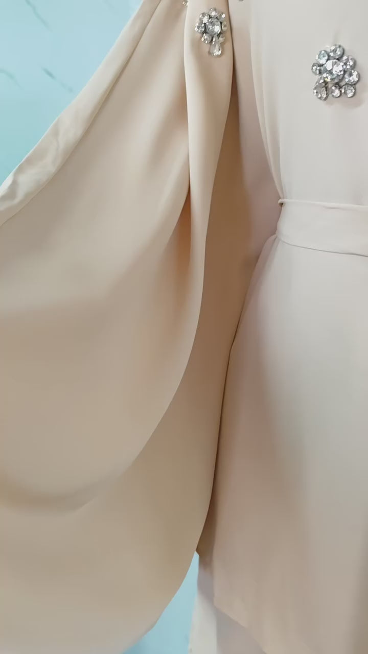 Abaya con kimono de terciopelo Beige