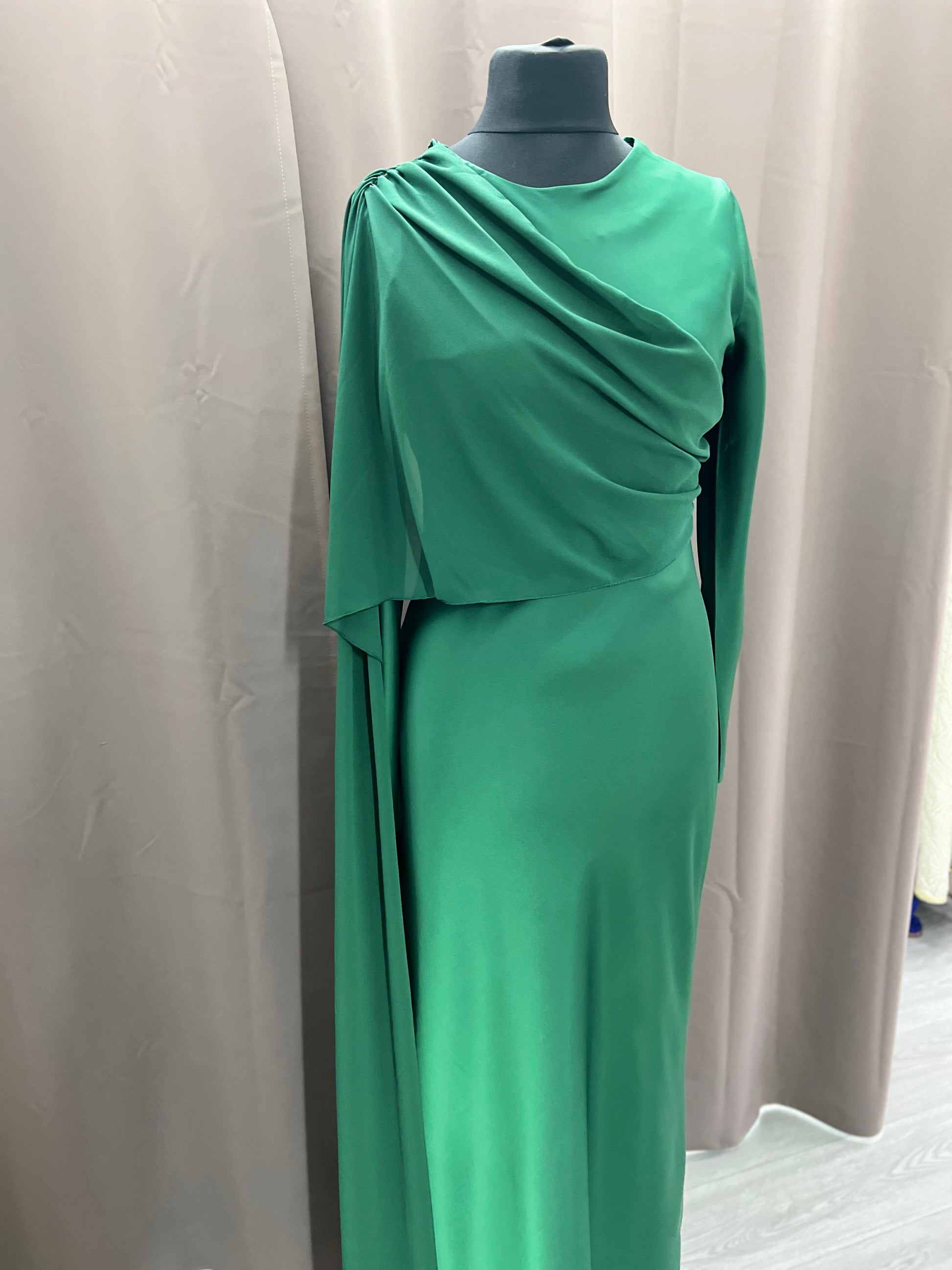 Vestido de color verde, de raso, con tul.